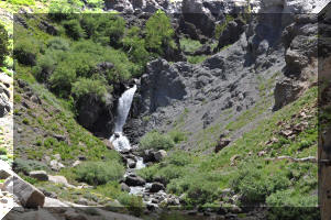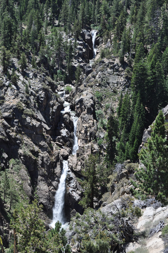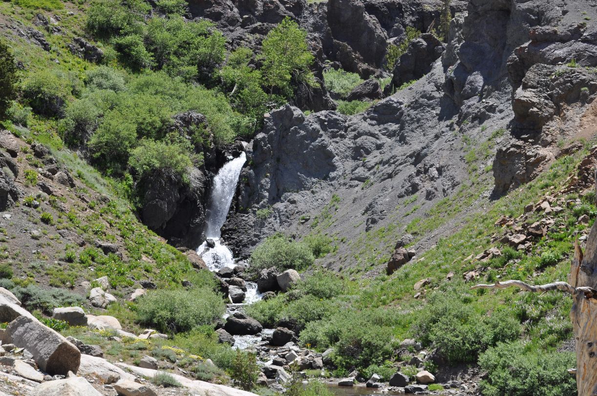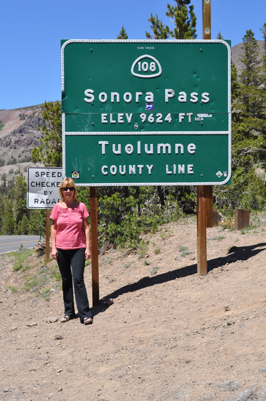 Climbing Sonora Pass - water falls on both sides - Mountain peaks between 10,000 and 11,459 Ft.