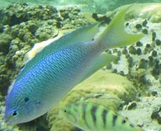Skin-diving with jellyfish White Damselfish and Mandarin fish.