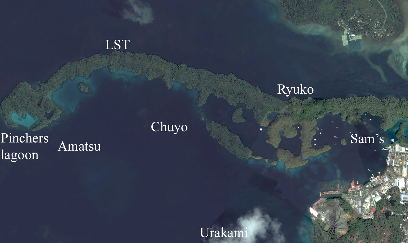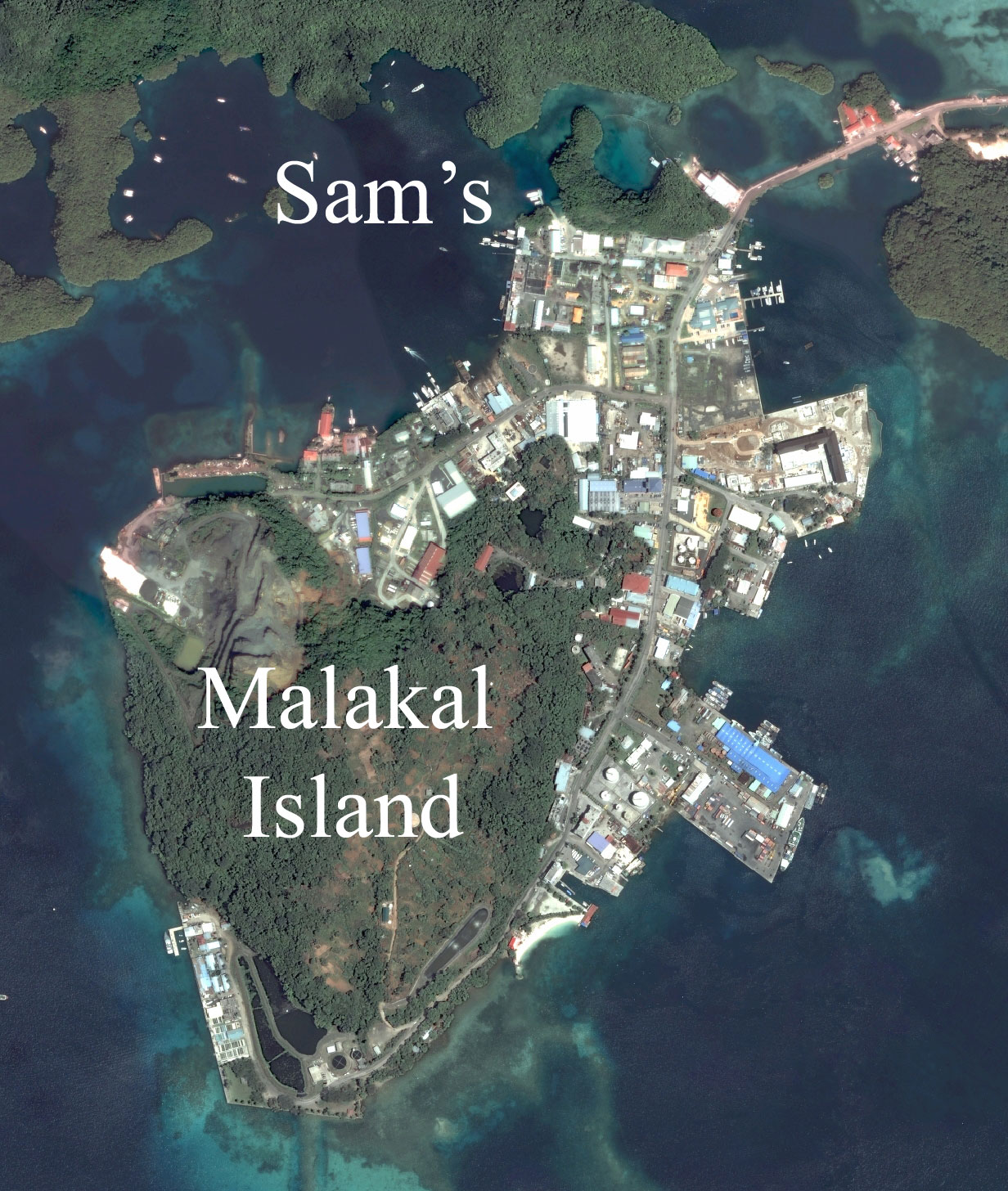 Malakal Harbor For a big picture click here Top left hand corner of picture is 7º 21.767' - N 134º 25.227'E Bottom right hand corner of picture is 7º 16.435 'N - 134º 29.255'E Click here for shipwrecks Picture is 6.13 miles high Click here for Sam's |