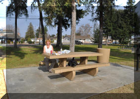 January 26 Lisa, Jim and Shasty having Lunch