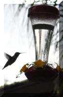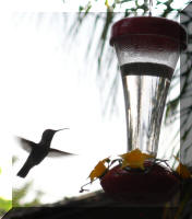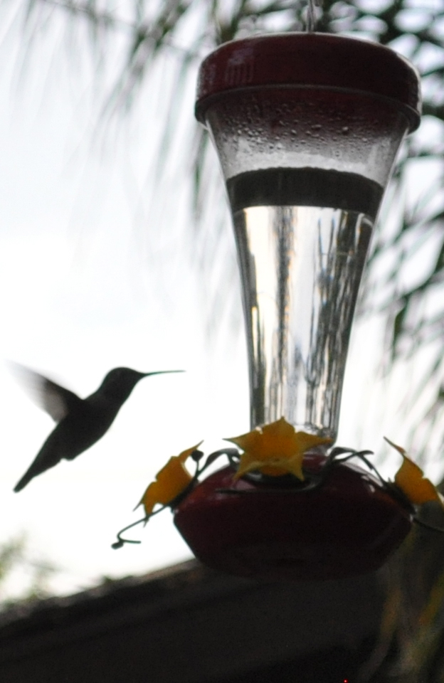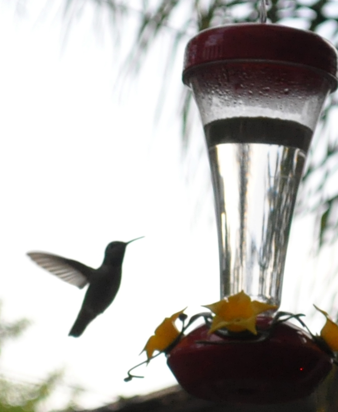 Hummingbirds hang out in our back yard all the time