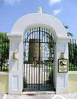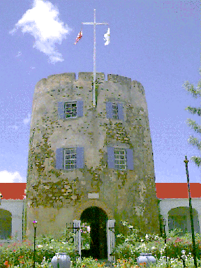Blackbeard's Castle Skytsborg Tower (meaning sky tower), was built in 1679 by the Danes as a watchtower for the harbor of Charlotte Amalie. Located at the highest point on Government Hill, Danish soldiers used Skytsborg as a vantage point to spot enemy ships. It is not known what year Skytsborg Tower took on the name of Blackbeard's Castle, but the infamous Edward Teach, commonly known as Blackbeard, did sail the Caribbean waters in the early 1700s. It has become part of the lore of the island that he used the Tower as a vantage point for his own treacherous purposes. Blackbeard's Castle is one of four National Historic sites in the US Virgin Islands. |